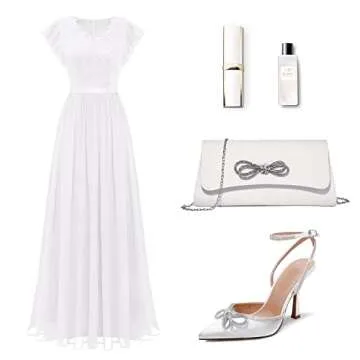 Show moreExperience elegance like never before with the Labair Women's Evening Bag. This stunning clutch purse combines gorgeous styling with practical functionality, making it the perfect accessory for your evening wear. The exquisite sparkly bow design effortlessly elevates your outfit, whether you're dressing up for a wedding, a formal event, or a night out with friends. Measuring at 10.23"W x 5.11"H x 1.96"D, it’s spacious enough for your daily essentials such as your iPhone (including models 12 Pro, 11 Pro, X, XS Max, 8), makeup basics, and your must-have accessories. With its detachable "O" chain strap, you have the flexibility to wear it as a cross-body bag or a chic shoulder bag, adapting effortlessly to your needs.