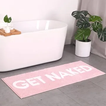 Show more Introducing the unique and charming Get Naked Bath Mat, a delightful addition to your bathroom that perfectly blends style, comfort, and practicality. Made from soft and durable materials, this bath mat is designed to elevate your home decor while providing a cozy spot for your feet as you step out of the shower or tub. The plush texture is paired with an eye-catching design featuring the playful phrase 'Get Naked', infusing your space with humor and warmth.
