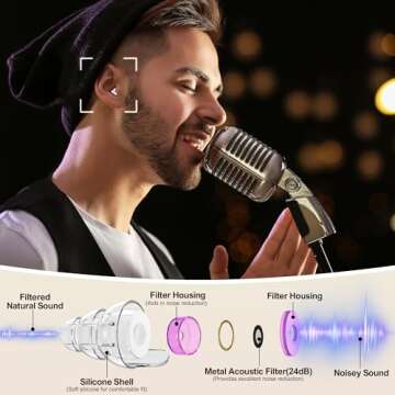 Labeopuwu High Fidelity Earplugs Set, Reusable Ear Plugs for Noise Reduction, 2 Pairs Concert Ear Plugs and 1 Pair Ear Plug for Sleeping Noise Cancelling, Noise Sensitivity, Hearing Protection(Purple)