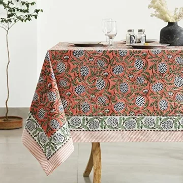Labhanshi Indian Handblock Print Cotton Tablecloth - 60x90 Inch, Versatile Decorative Cover for 6-Seater Dining Tables