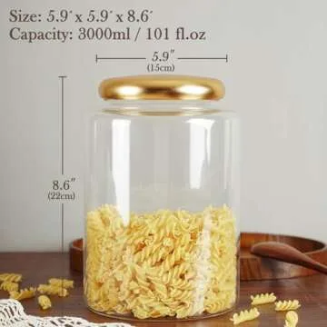 Labina Glass Storage Container Food Jars Kitchen Canister with Metal Lids and Screw feature, 101 Oz Wide Mouth Pantry Organization Glass Jar for Flour, Sugar, Cookie, Spagetti, Nuts and Candy