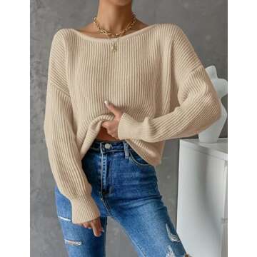 Introducing the ultimate fashion statement for your wardrobe – the Labolliy Women Twist Back Backless Drop Shoulder Long Sleeve Pullover Rib Knit Sweater Tops. This stunning pullover sweater perfectly combines comfort with contemporary style. Crafted from a high-quality rib knit fabric, it delivers a lightweight and breathable wearing experience, making it a go-to choice for the transitional seasons of Spring and Fall. Its unique twist back design takes...
