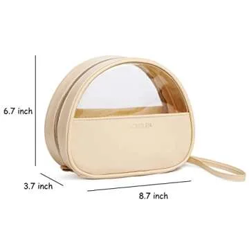 LACATTURA Clear Travel Makeup Bag, Small Vegan Leather Cosmetic Organizer, Transparent Toiletry Beauty Bag, Portable Zipper Pouch Storage Bag for Women, Apricot