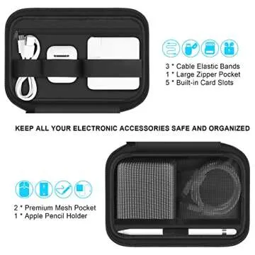 Lacdo Electronic Organizer Accessory Pouch for MacBook Charger, Cables, Power Bank, Hard Drive, Travel Cords, SD Card, Water-resistant Storage Bag with Card Slots for Memory Card, Black