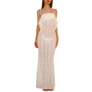 Show more Introducing the exquisite Lace Maxi Dress for Women - your ultimate summer beach essentials that seamlessly blends style and comfort. This stunning sheer lace dress features a spaghetti strap design, gracefully accentuating your silhouette while providing a fashionable cover-up for your swimwear. Made from high-quality polyester, this breathable, lightweight outfit ensures all-day comfort as you bask in the sun or frolic by the waves. Its trendy mesh fabric and floral allure make it the perfect choice for various occasions, whether you're on a beach vacation or attending a summer gathering.