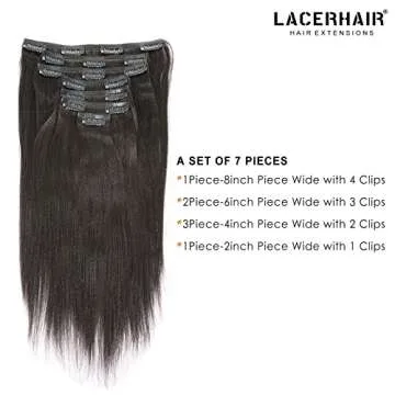 Lacer Light Yaki Clip in Hair Extensions - 22 Inch Natural Black Remy Hair