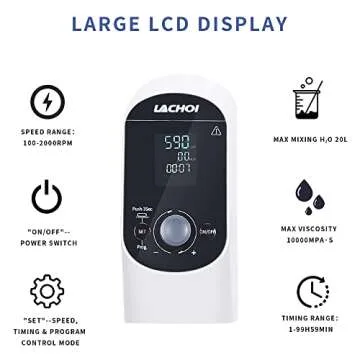 In a crowded market of overhead stirrers, the LACHOI Electric Overhead Stirrer Mixer stands out thanks to its comprehensive LCD display, user-friendly design, and robust performance specs. While many traditional stirrers only show set speeds, this model provides real-time data, enhancing control and stability during experiments. Additionally, the safety features help prevent mishaps, making it a trustworthy choice compared to others that lack such protections. The adjustable stirring rod and ease of setup also position it as a customer-favorite amongst both seasoned professionals and newcomers alike.