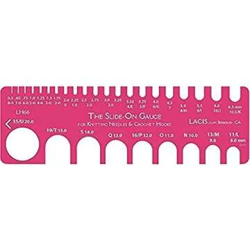 Show moreThe Lacis Slide On Knitting and Crochet Gauge is an essential tool for any knitting or crochet enthusiast. Measuring between sizes 8-0 to 35, this durable and user-friendly gauge is designed to accurately identify the size of your hooks and needles, eliminating the common frustrations other gauges present. Gone are the days of struggling with gauges that require you to slide your hook through a hole; with the Lacis gauge, you simply slide it in sideways, making it a practical and innovative solution. Crafted from sturdy materials, it won’t bend or break, ensuring reliable performance throughout your crafting journey. Plus, with its compact size of 6 inches by 2 inches, it's perfectly portable for on-the-go crafting demands.