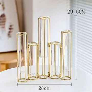 LACKINGONE 5 pcs Flower Vase, Metal Stand Decorative Glass Flower Vase, Metal Stand Hinged Bud Test Tubes Vases Display Set for Home Décor (5 Test Tubes)