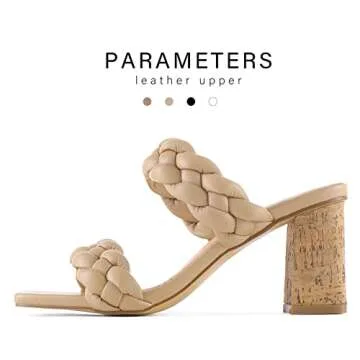 LACUONE Women's Braided Heels Square Open Toe Chunky High Heeled Sandals Double Woven Strap Slip-On Casual Shoes (9,Y-Khaki)