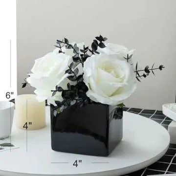 LADADA Artificial Flowers with Small Ceramic Vases, Roses in Vases Plastic Artificial Flowers and Plants,Used for Home Office Wedding Decoration, Table Decoration(White)