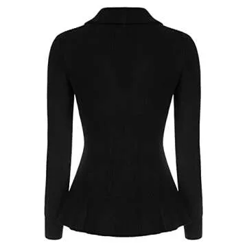 Ladies Elegant Cardigan Sweater 1950s Retro Cable Knitted Sweater Lapel Collar Cardigan (Black, L)