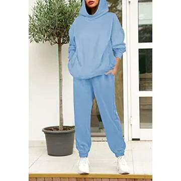 Ladies Jogger Outfit Sweatsuit 2 Piece Long Sleeve Hooded and Pant Set Tracksuit Blue M