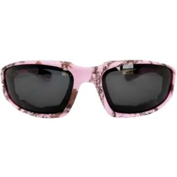 Ladies Pink Motorcycle CAMO Padded Foam Sport Glasses Smoke Lens 99% UV protection