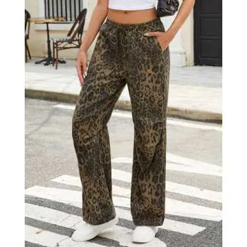 Ladyful Wide Leg Leopard Print Jeans for Women High Waisted Boyfriend Denim Pant Drawstring
