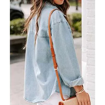 Ladyful Women's Oversized Denim Shirt Shacket - Stylish Casual Look