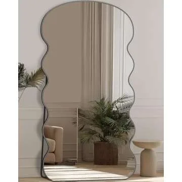 LadyNow Arched Full Length Mirror, 76"x34" Floor Mirror Freestanding, Floor Standing Mirror Full Body Mirror with Stand for Bedroom, HomeDecor Hanging Mounted Mirror for Living Room Cloakroom, Black