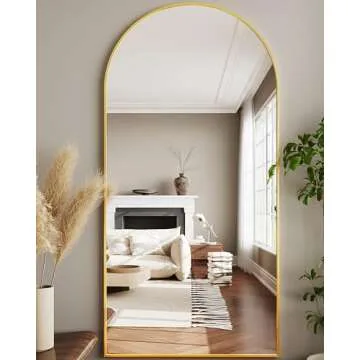 LadyNow Full Length Mirror, 76"x34" Arched Floor Mirror Freestanding, Floor Standing Mirror Full Body Mirror with Stand for Bedroom, Hanging Mounted Mirror for Living Room Cloakroom, Gold