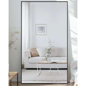 Show moreElevate your space with the LadyNow Full Length Mirror, a stunning 81" x 41" oversized floor mirror that redefines elegance and functionality. This sleek and modern piece is designed not only to reflect your beauty but also to enhance the aesthetic of your environment. The mirror’s curved edges and chic black finish create a contemporary look that seamlessly fits into any room—from bedrooms to boutique shops. The carefully crafted shatterproof glass ensures that while you admire yourself, safety is never compromised, providing peace of mind in addition to style.