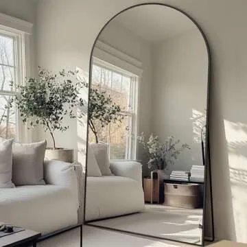 LadyNow Full Length Mirror, 83"x44" Floor Mirror Freestanding, Oversized Floor Standing Mirror Full Body Mirror with Stand for Bedroom, Hanging Mounted Mirror for Living Room Cloakroom, Black, Arched