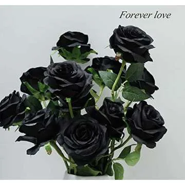 Laelfe 12 PCS Artificial Flowers Black Roses, Fake Silk Flower Long Stem Artificial Black Rose for Halloween Home Wedding Party Decorations(Black)