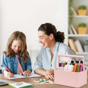 LAFARA Multipurpose Caddy Organizer with Handle and Adjustable Divider, Portable Art Supply Storage Organizer for Art Craft Supplies, Dorm, Classroom, Office, Bathroom, Shower, Cleaning, Makeup (Pink)