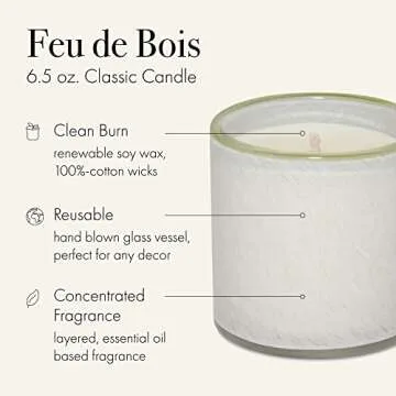 LAFCO New York Classic Candle, Feu de Bois - 6.5 oz - 50-Hour Burn Time - Reusable, Hand Blown Glass Vessel - Made in The USA