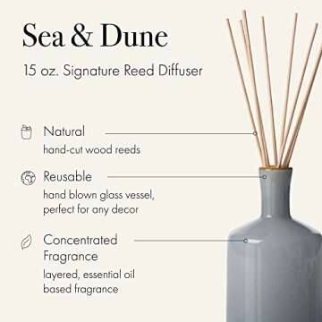 LAFCO New York Signature Reed Diffuser, Sea & Dune - 15 oz - Up to 9 Months Fragrance Life - Reusable, Hand Blown Glass Vessel - Natural Wood Reeds - Made in The USA