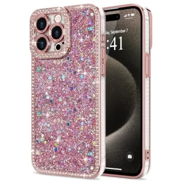 Show more Introducing the Lafunda iPhone 15 Pro Max Case – a beautiful blend of style and protection! Designed specifically for the iPhone 15 Pro Max 6.7-inch, this exquisite phone case elevates your device with its stunning sparkly and glitter design. Featuring dazzling diamond embellishments that are set securely on the lens and edges, it is truly a fashionable statement piece ideal for any woman or girl looking to enhance her phone's aesthetic. Crafted with glitter drop glue, the case prevents fading and damage, ensuring your case remains as glamorous as the day you got it.