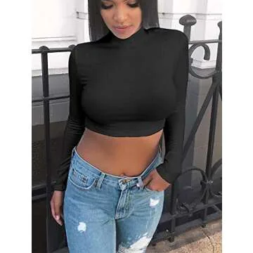 LAGSHIAN Basic Long Sleeve Crop Top for Women, Sexy Turtleneck