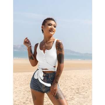 LAGSHIAN Women's Sexy Summer Button Sleeveless Tank Strappy Casual Basic Crop Top White