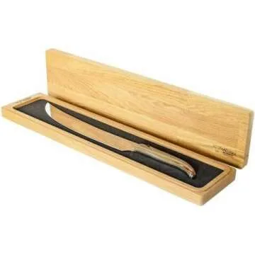 Show moreIntroducing the Laguiole en Aubrac Stainless Steel Champagne Saber with Solid Horn Handle, a masterfully crafted champagne saber perfect for those special moments of celebration. Originating from the renowned Laguiole en Aubrac brand, this saber stands out with its blend of sophistication and functionality. Featuring a robust stainless steel blade and an elegant solid horn handle, it ensures a comfortable and secure grip, adding a touch of class to any event. This exquisite piece not only serves as an efficient bottle opener but also as a remarkable display of craftsmanship, making it a conversation starter at any gathering. Ideal for champagne enthusiasts and collectors alike, this saber embodies the tradition and heritage of French knife-making artistry.