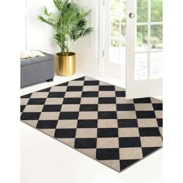 Lahome Checkered Easy Jute 3x5 Outdoor Patio Rug, Washable Rugs for Entryway Diamond Indoor Outdoor Living Room Carpet, Farmhouse Neutral Non Slip Black Door Carpet for Backyard Bedroom