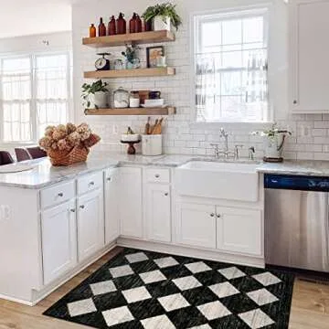 Lahome Moroccan Trellis Area Rug - 3x5 Washable Black Entry Rug Non Slip Living Room Mat, Distressed Lattice Soft Stain Resistance Indoor Throw Carpet for Front Door Foyer Bedroom Bathroom