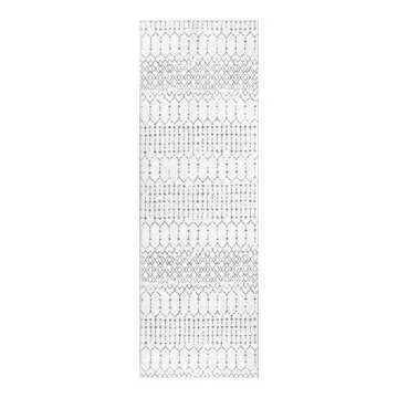 Lahome Moroccan Washable Runner Rug - 2x6 Non-Slip Throw Hallway Runner Rug Ultra-Thin Soft Kitchen Runner Laundry Room Rug White Print Distressed Carpet Runner for Entryway Bathroom Living Room