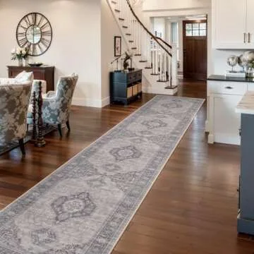 Lahome Oriental Hallway Runner Rug, 2.5x10 Washable Runner Ultra-Thin Hallway Rug for Bedroom Entryway, Soft Long Carpet for Kitchen Bathroom Laundry Room, Grey/Brown
