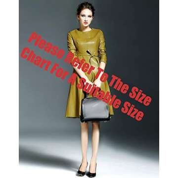 LAI MENG FIVE CATS Womens Faux Leather Fashion Midi Bodycon A-line Dress with Belted, Yellow, Large