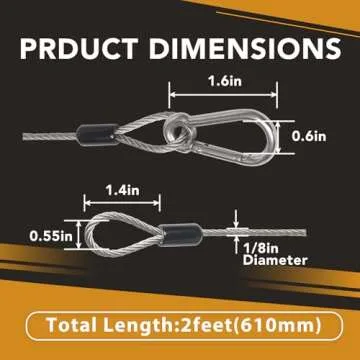 Show moreIntroducing the LAICCUM 4 Pack Stage Light Safety Cables, your ultimate solution for securely suspending lighting fixtures and ensuring safety during performances, installations, or home projects. Crafted from premium 304 stainless steel, these cables have a robust 1/8" (3mm) diameter and a generous length of 2 feet (610mm), suitable for various applications. Designed to support loads of up to 150 lbs, they provide peace of mind whether you're illuminating a stage at a concert, setting up technical equipment, or organizing lighting in your garage or workshop.