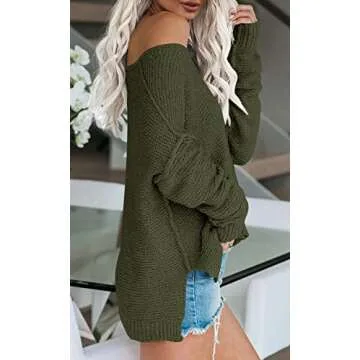 Designed for versatility, this lightweight pullover transitions easily from warm summer days to cool autumn evenings. Its long batwing sleeves and dropped shoulder style enhance its casual elegance, while side slits add a modern twist. The solid color options, including the delightful army green, make it easy to pair with everything from leggings and jeans to your favorite high heels.