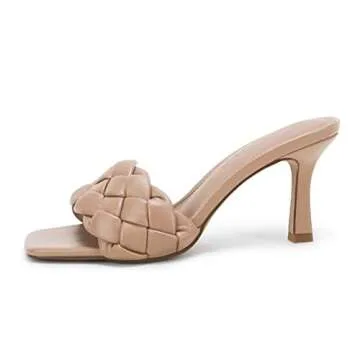 LAICIGO Women's Square Open Toe Woven Mule Heeled Sandals Braided Stiletto Slip On High Heel Quilted Leather Slides