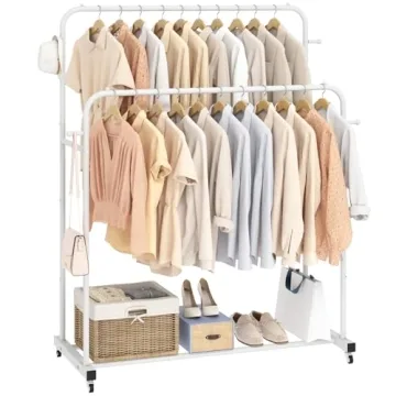Aiensia Double Rods Garment Rack with Wheels – Multi-functional Clothing Organization