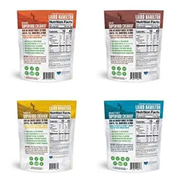Laird Superfood Coffee Creamer Sampler Pack | Non-Dairy | Organic | Gluten Free | Vegan | Paleo Diet Approved | Unsweetened, Original, Cacao and Turmeric- 8 Ounce (Pack of 4)