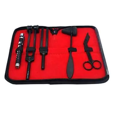 Laja Imports Student Exam Kit - 5-Piece Assessment and Diagnostic Set Color Black - Reflex Hammer, C128 and C512 Tuning Forks, Pupil Gauge, Bandage Scissors – Perfect for Educational Use