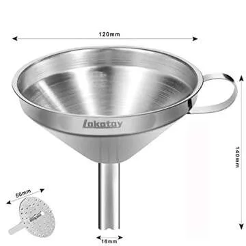 Lakatay 5-Inch Food Grade Stainless Steel Kitchen Funnel with Strainer Filter for Transferring of Liquid Dry Ingredients and Metal Cooking Funnel—Silver