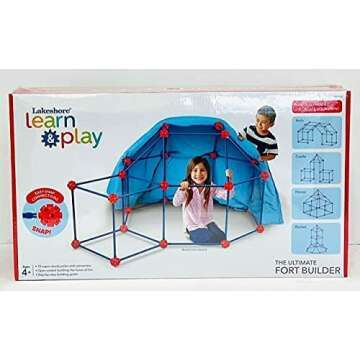 Show moreWith these sturdy, snap-together constructions, kids can construct any fort they can dream up! The connections and poles are simple for kids to snap together, then they can wrap a sheet or blanket around their forts. A helpful step-by-step manual demonstrates young children how to construct everything from a castle to an awesome igloo. The kit contains 70 components, consisting of 45 poles and 25 connections, with each pole measuring 16 inches long. Designed for kids ages 4 to 11, this fort builder inspires creativity and learning through hands-on play.
