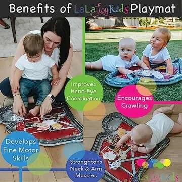 LaLa Lou Kids Tummy Time Mat Premium Inflatable Big Red Barn Farmer Toy Tummy Time Water Mat with Stimulation Toys Promoting Muscles Development and Motor Skills in Infants and Toddlers