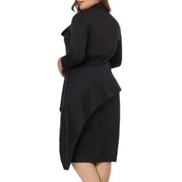 Show moreIntroducing the exquisite LALAGEN Women's Plus Size Long Sleeve Peplum Tie Neck Bodycon Pencil Midi Dress, a stunning fashion statement designed for the modern woman who embraces her curves. Crafted from a high-quality blend of 95% polyester and 5% spandex, this dress offers a delightful combination of style and comfort. Its vintage bow tie neck adds a hint of elegance, while the high-low peplum style and bodycon pencil silhouette accentuate your figure beautifully, making it ideal for a variety of occasions.