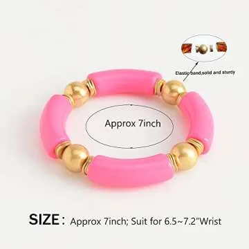 LALAPPLE Gold Plated Beaded Acrylic Bamboo Tube Bangle Bracelets for Women, Colorful Chunky Curved Tube With Gold Pieces Beads Stretch Bracelet Friendship Summer Beach Jewelry (M-Watermelon red)