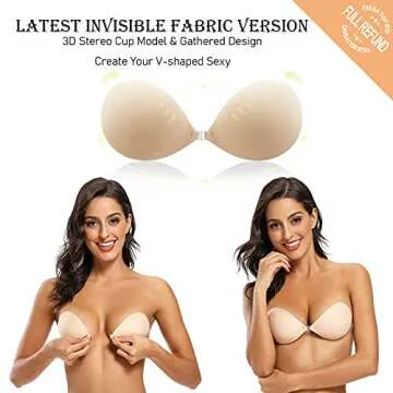 lalaWing Adhesive Bra, Sticky Strapless Fabric Bra Invisible Apply to Women Daily Dress Comes with Nipple Covers (C, Nude)