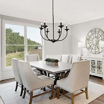 Show moreTransform your dining area with the stunning Modern Black Chandelier, a spectacular lighting fixture that merges elegance with functionality. The entire body of this exquisite chandelier is crafted in a matte black finish, showcasing 6 classic arms that not only enhance its aesthetic but also provide ample illumination. Whether you're aiming for a contemporary or a farmhouse style, this chandelier promises to elevate the ambiance of your kitchen or dining space.